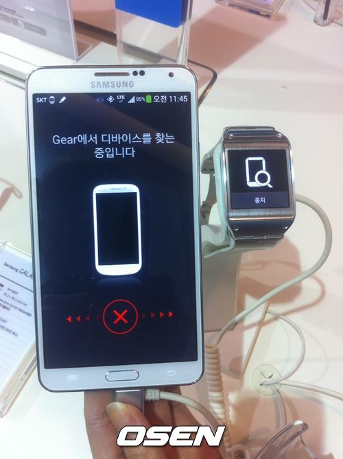 또한, '갤럭시 기어'를 착용한 상태에서 스마트폰을 두고 잠시 자리를 비웠을 때 약 1.5미터 이상 떨어지면 자동으로 휴대폰의 화면 보호 기능을 활성화해 개인 정보를 보호하기도 하고, 휴대폰을 어디에 두었는지 기억을 못할 때 스마트폰의 소리, 진동 기능을 실행시켜 위치를 확인할 수도있다.