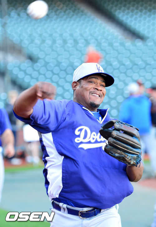 25일 (이하 한국시간) 미국 캘리포니아 샌프란시스코 AT&T 파크에서 열린 2013 메이저리그 샌프란시스코 자이언츠와 LA 다저스 경기, 경기 전 다저스 후안 유리베가 수비 훈련을 하고 있다.