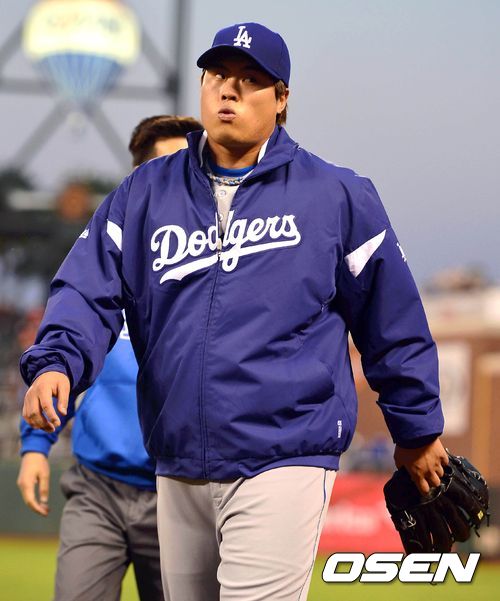25일 (이하 한국시간) 미국 캘리포니아 샌프란시스코 AT&T 파크에서 열린 2013 메이저리그 샌프란시스코 자이언츠와 LA 다저스 경기 류현진이 더그아웃으로 가면서 심호흡을 하고 있다.