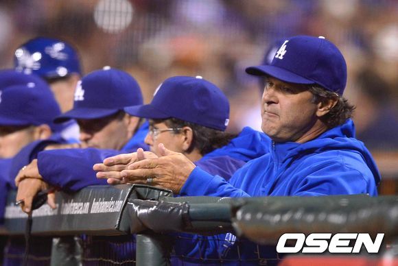 25일 (이하 한국시간) 미국 캘리포니아 샌프란시스코 AT&T 파크에서 열린 2013 메이저리그 샌프란시스코 자이언츠와 LA 다저스 경기 1회말 류현진이 무실점으로 이닝을 마무리 하자 매팅리 감독이 박수를 치고 있다.