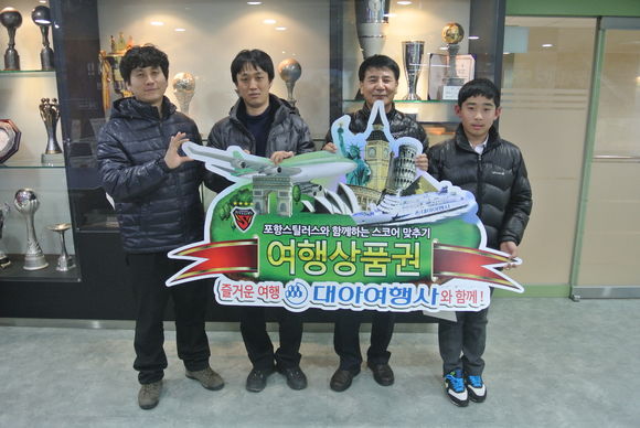 지난해부터 지역 여행업체인 대아항공여행사의 후원으로 진행되고 있는 포항스틸러스 스코어 맞추기는 올 시즌 포항스틸러스가 펼친 모든 경기 (K리그 클래식, ACL, FA컵)를 대상으로 경기 시작 전에 경기 스코어를 예측하고 적중 결과에 따라 10점, 3점, 1점을 받고,마지막 경기가 끝난 뒤 최고 득점자 3명에게 여행상품권을 수여한다.