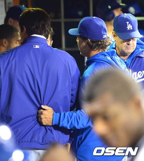 투구를 마친 류현진과 매팅리 감독이 이야기를 나누고 있다. / rumi@osen.co.kr