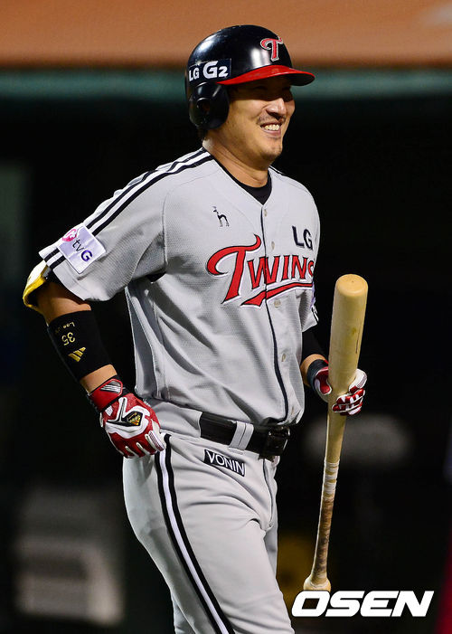 25일 오후 대전구장에서 열린 '2013 한국야쿠르트 세븐 프로야구' 한화 이글스와 LG 트윈스의 경기 2회초 선두타자 정성훈의 타석, 자신의 타석으로 착각한 이진영이 타석에 나갔다 덕아웃으로 돌아오고 있다.