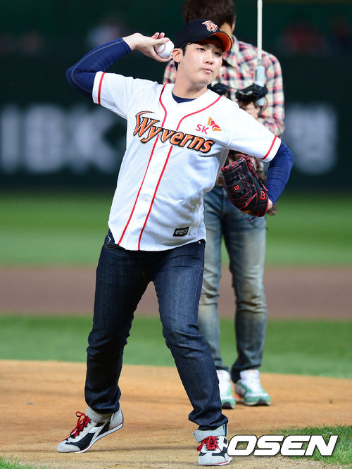 25일 오후 인천 문학구장에서 열린 '2013 한국야쿠르트 세븐 프로야구' SK 와이번스와 삼성 라이온즈의 경기에 앞서 前 삼미 슈퍼스타즈 감독을 맡았던 故 박현식 감독의 손자 박준수 씨가 시구를 하고 있다
