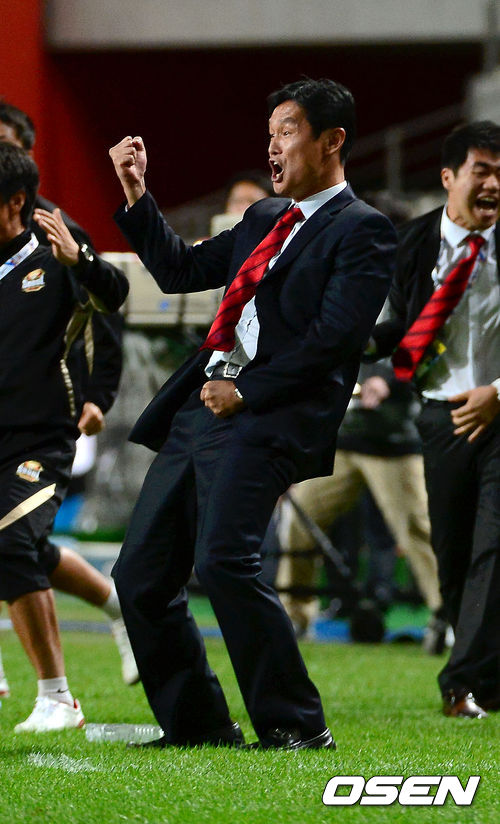 기뻐하는 최용수 감독,'바로 이거야!'