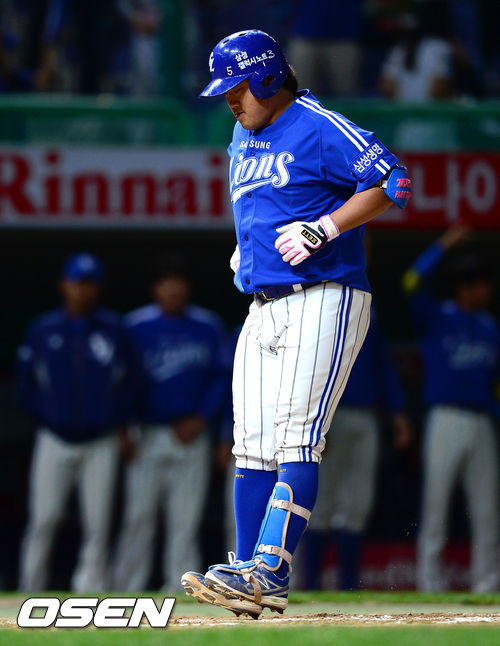 25일 오후 인천 문학구장에서 열린 '2013 한국야쿠르트 세븐 프로야구' SK 와이번스와 삼성 라이온즈의 경기 8회초 무사 1,3루 삼성 박석민이 역전 3점 홈런을 날리고 홈을 밟고 있다