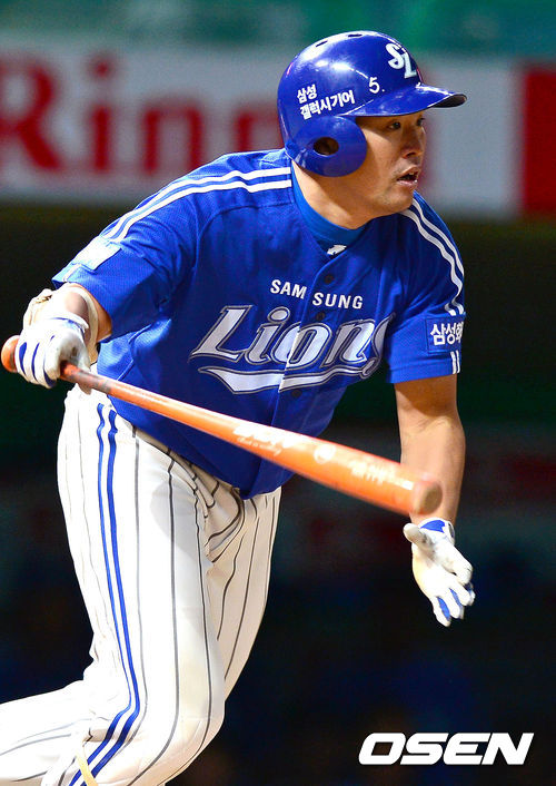 25일 오후 인천 문학구장에서 열린 '2013 한국야쿠르트 세븐 프로야구' SK 와이번스와 삼성 라이온즈의 경기 8회초 무사 만루 삼성 박한이가 2타점 적시타를 날리고 있다