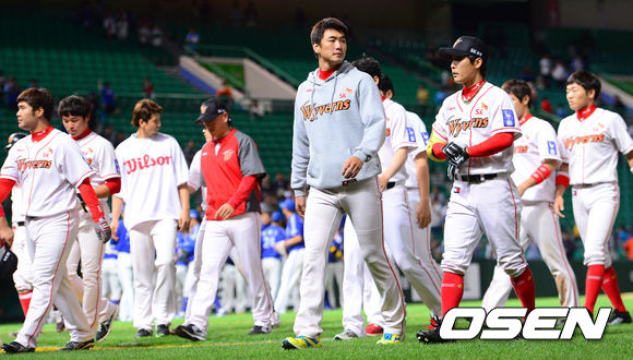 경기종료 후 SK선수들이 아쉬운 표정을 팬들에게 인사를 하고 있다. / soul1014@osen.co.kr