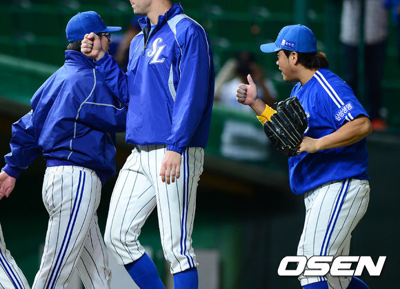 경기종료 후 삼성 선수들이 승리의 기쁨을 나누고 있다. / soul1014@osen.co.kr