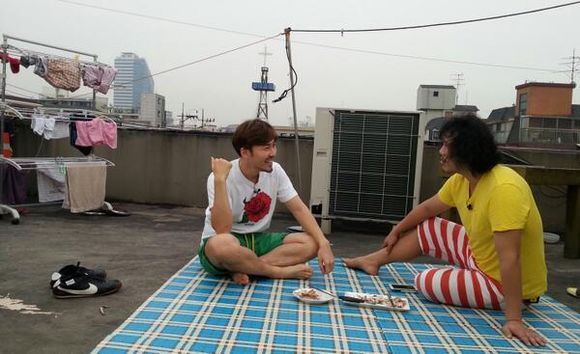 사진 속 두 사람은 빨래가 빼곡하게 널려있는 옥상 한 켠에 하늘색의 돗자리를 깔고 앉아 이야기를 나누고 있다. 편안한 복장으로 웃으며 대화를 나누는 두 사람의 화기애애한 모습이 현재 진행되고 있는 '2013무도가요제'에 대한 기대감을 높인다.