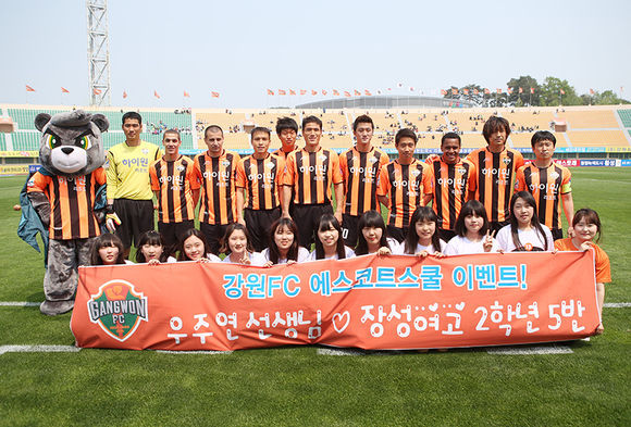 강원의 '에스코트 스쿨' 이벤트는 담임 교사 1명과 제자 10명이 선수들의 손을 잡고 나서는 특별한 프로젝트다. 담임 교사도 제자들과 함께 이벤트에 참여하기 때문에 강원의 '에스코트 스쿨' 이벤트는 사제 간의 돈독한 정을 쌓을 수 있는 또 다른 기회의 장이 될 수 있다.