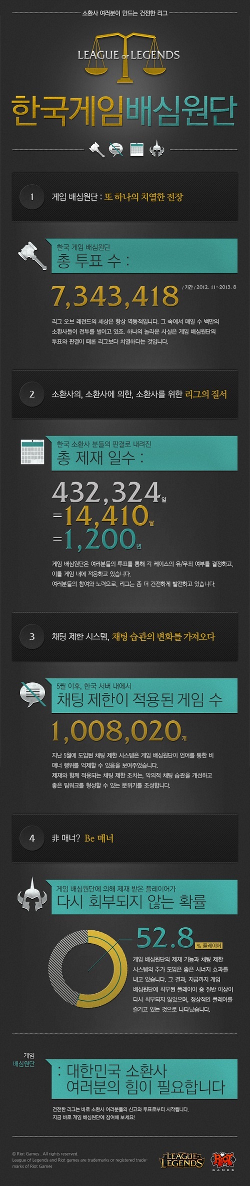 라이엇 게임즈는 자사가 개발 및 배급하는 인기 온라인 게임 리그 오브 레전드(이하 LoL)와 관련해 ‘게임 배심원단 시스템(트리뷰날, The Tribunal)’의 운영 성과를 발표했다.
