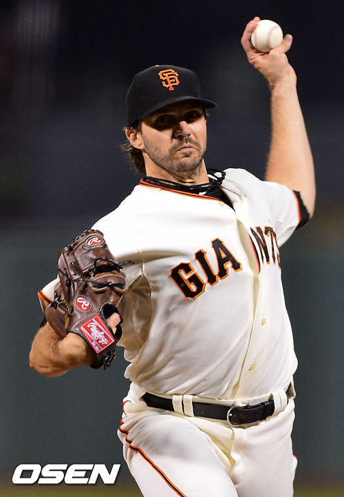 26일 (이하 한국시간) 미국 캘리포니아 샌프란시스코 AT&T 파크에서 열린 2013 메이저리그 샌프란시스코 자이언츠와 LA 다저스 경기, 샌프란시스코 선발 배리 지토가 힘차게 공을 뿌리고 있다.