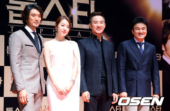 26일 오전 서울 광진구 롯데시네마에서 진행된 영화 '톱스타'(박중훈 감독) 제작보고회에서 김민준 소이현 엄태웅 박중훈이 포토타임을 갖고 있다.