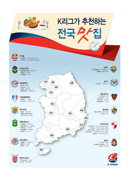 ▲ K리그 클래식 14개 구단 연고지 맛집 리스트 (구단명 / 식당명 / 추천메뉴 순서)