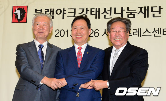 왼쪽부터 부만근 블랙야크강태선나눔재단장학재단 이사, 강태선 블랙야크강태선나눔재단장학재단 이사장, 최불암 블랙야크강태선나눔재단장학재단 이사./ 지형준 기자 jpnews@osen.co.kr