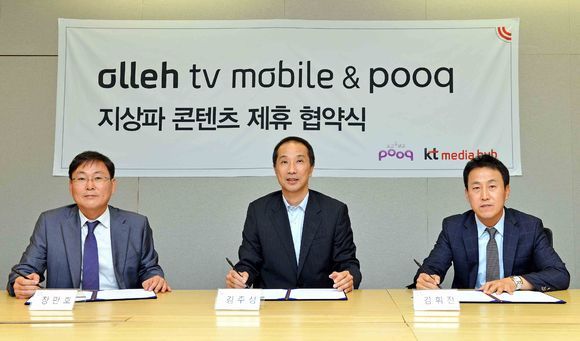 KT미디어허브와 콘텐츠연합플랫폼은 콘텐츠 제휴 협약식의 결과로 올레tv모바일에 pooq(푹)의 MBC, SBS 채널 등이 적용하기로 했다. 이로써 올레TV 모바일 이용자들은 지상파 실시간 방송을 모바일 TV로 즐길 수 있게 됐다. 그 동안 모바일 TV들은 지상파 실시간 채널을 보유하지 않아, 이들 방송을 보려면 DMB 등을 이용할 수 밖에 없었다.