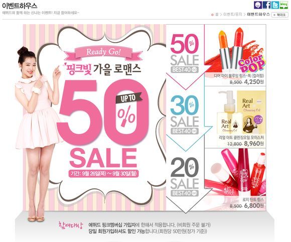 26일 에뛰드하우스에 따르면 이번 '핑크빛 가을 로맨스' 세일 이벤트는 9월30일부터 5일간 최대 50% 할인 혜택을 제공한다.