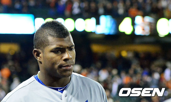 경기를 마치고 덕아웃에서 다저스 푸이그가 아쉬운 표정으로 퇴장하고 있다. / rumi@osen.co.kr