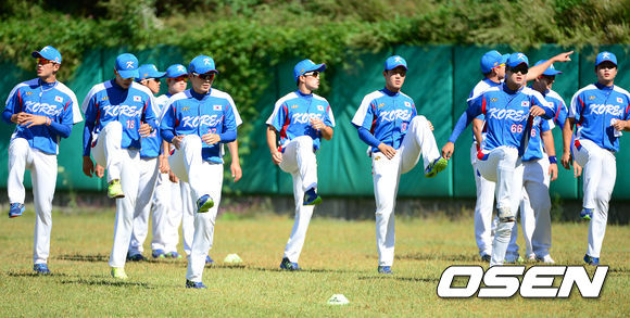 야구 국가대표팀이 몸풀기 훈련을 하고 있다.