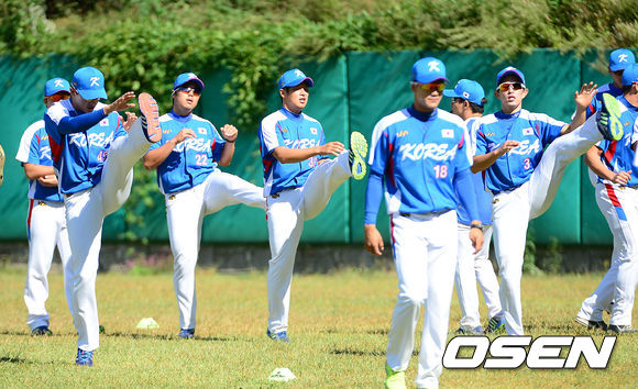 야구 국가대표팀이 몸풀기 훈련을 하고 있다.