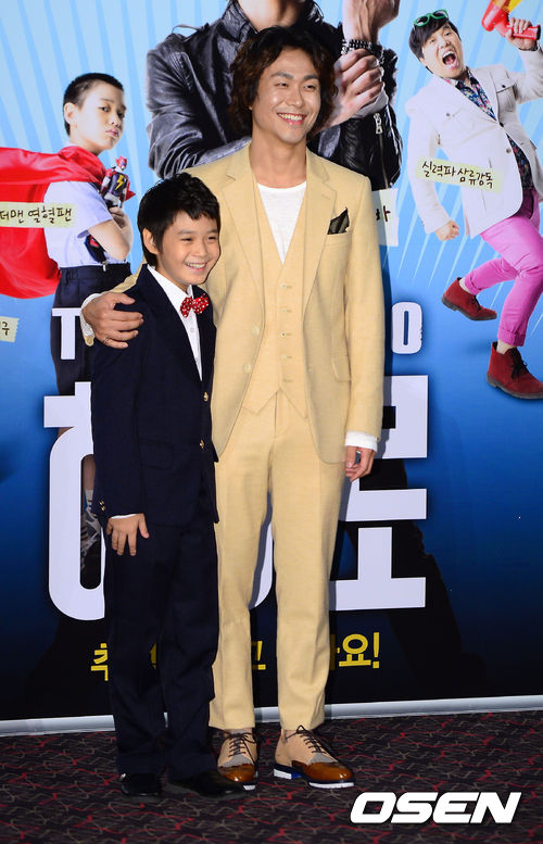 26일 오후 서울 행당동 CGV 왕십리에서 진행된 영화 '히어로' 언론시사회에서 오정세와 아역배우 정윤석군이 포토타임을 갖고 있다.