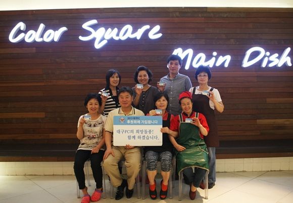 대구FC(대표이사 김재하)의 홈경기장 대구스타디움 서편에 위치한 복합쇼핑몰 내 푸드코트 입점주 전원(점주 김미연, 배재원, 안진형, 이규문, 이금옥, 황상근)이 26일 오후 대구FC 연간후원 기업회원에 가입하며 대구FC 후원에 동참했다.