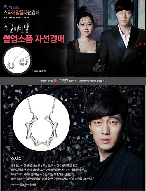SBS 수목드라마 '주군의 태양'의 공효진 목걸이가 '스타애장품 자선경매'에서 인기를 끌고 있다.