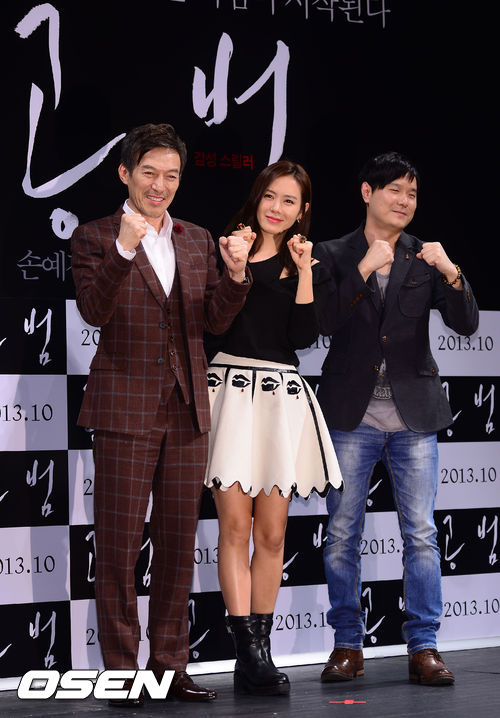 26일 오후 서울 압구정 CGV에서 열린 영화 '공범'(감독 국동석) 제작보고회에서 배우 손예진과 김갑수, 국동석 감독이 포즈를 취하고 있다