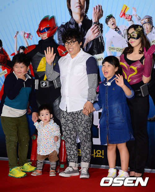 26일 오후 서울 행당동 CGV 왕십리에서 진행된 영화 '히어로' VIP 시사회에서 정은표가 아이들과 포토타임을 갖고 있다.