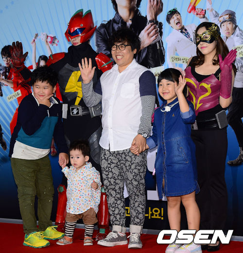 26일 오후 서울 행당동 CGV 왕십리에서 진행된 영화 '히어로' VIP 시사회에서 정은표가 아이들과 포토타임을 갖고 있다.