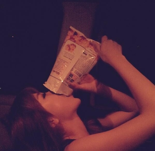 [OSEN=방송연예팀] 가수 홍진영이 과자 먹방(먹는 방송) 인증 사진을 공개했다.