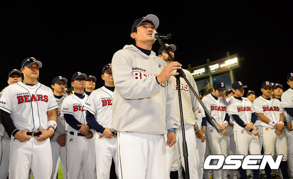 경기 종료 후 관중석을 찾은 두산 노경은이 팬들에게 인사를 하고 있다. /sunday@osen.co.kr