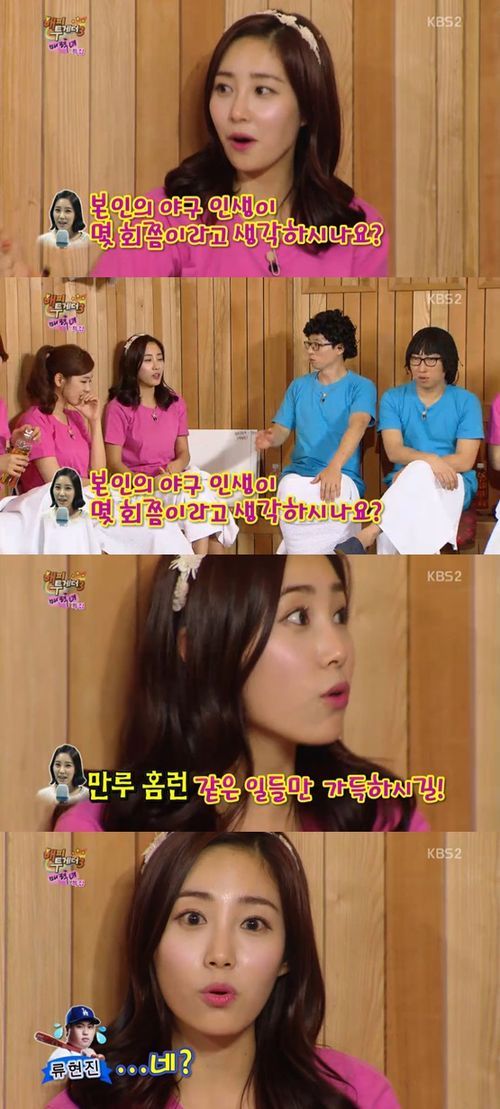 최희 아나운서는 26일 방송된 KBS 2TV 예능프로그램 '해피투게더' 매력녀 특집에서 류현진 선수에게 말 실수한 경험을 공개했다.