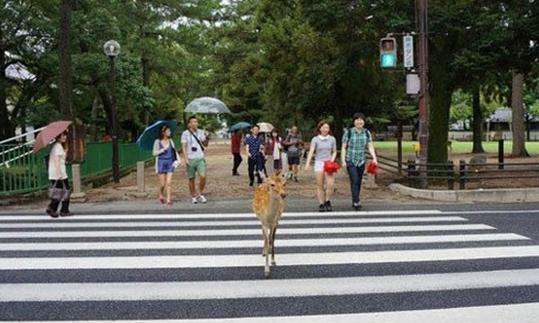 ‘교통 신호 지키는 사슴’은 일본의 한 공원에서 촬영된 것으로 알려졌다.