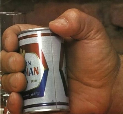 해외 온라인 게시판에 올라온 이 사진은 손으로 맥주 캔을 쥐고 있는 모습이 담겨있다. 그가 쥐고 있는 맥주 캔은 마치 작은 모형의 장난감처럼 느껴진다.