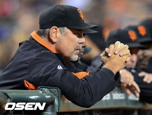 27일 (이하 한국시간) 미국 캘리포니아 샌프란시스코 AT&T 파크에서 열린 2013 메이저리그 샌프란시스코 자이언츠와 LA 다저스 경기, 샌프란시스코 브루스 보치 감독이 경기를 지켜보고 있다.