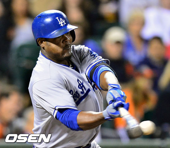 27일 (이하 한국시간) 미국 캘리포니아 샌프란시스코 AT&T 파크에서 열린 2013 메이저리그 샌프란시스코 자이언츠와 LA 다저스 경기, 8회초 2사 다저스 후안 유리베가 때린 타구가 3루수 라인드라이브로 아웃됐다.