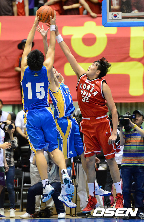 1쿼터 고려대 이종현과 김준일이 리바운드 다툼을 하고 있다.