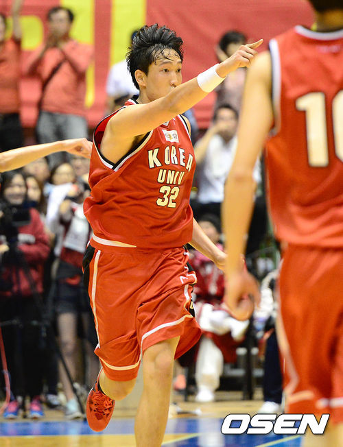 3쿼터 고대 이종현이 득점에 성공하며 환호하고 있다.