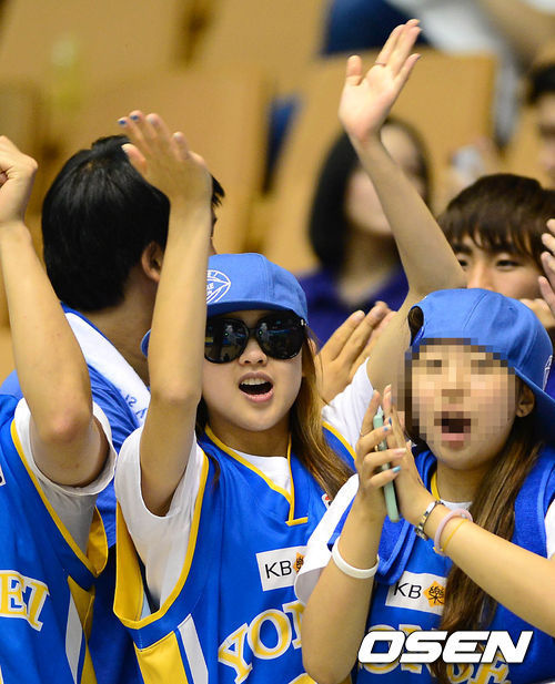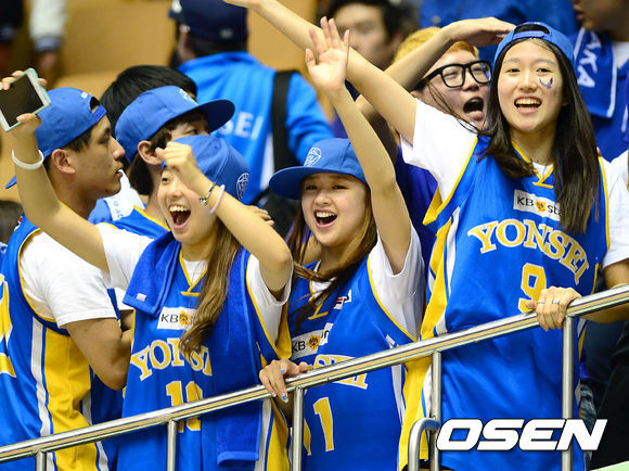 연세대도 기죽지 않았다. 경기 전 갑자기 연세대 응원단이 술렁였다. 바로 체조요정 손연재(19)가 나타난 것. 손연재는 연세대의 파란색 농구유니폼을 입고 귀엽게 모자를 눌러쓰고 경기장을 찾았다. 손연재의 등장에 연세대는 물론 고려대 응원단까지 흥분했다. 이에 연세대는 “고대생 김연아는 어디 갔냐?”며 신경전을 펼쳤다.
