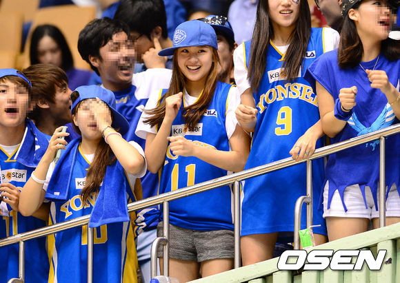 경기에 앞서 체조 선수 손연재가 열띤 응원을 펼치고 있다./sunday@osen.co.kr