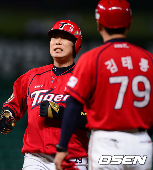 27일 오후 인천 문학구장에서 열린 '2013 한국야쿠르트 세븐 프로야구' SK 와이번스와 KIA 타이거즈의 경기, 1회초 2사 1루 KIA 나지완이 안타를 날린후 아쉬워하고 있다.