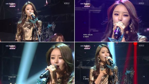 송지은은 27일 방송된 KBS 2TV '뮤직뱅크'에서 신곡 '희망고문'을 부르며 여성미가 물씬 풍기는 미모를 뽐냈다. 그는 실크 소재로 디자인된 원피스로 섹시한 분위기를 자아내는 가운데 화려한 액세서리로 미모를 더욱 빛나게 했다.