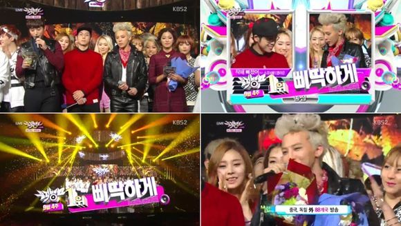 지난 20일 추석 특집 프로그램으로 결방한 '뮤직뱅크'에서 '니가 뭔데'로 1위를 차지한 바 있는 지드래곤은 다시 한 번 1위를 수상하며 2주 연속 1위의 영예를 안았다.