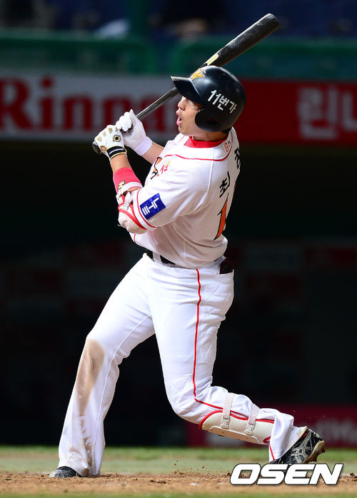 27일 오후 인천 문학구장에서 열린 '2013 한국야쿠르트 세븐 프로야구' SK 와이번스와 KIA 타이거즈의 경기,5회말 SK 최정이 몸쪽 가까운 공에 깜짝 놀라고 있다