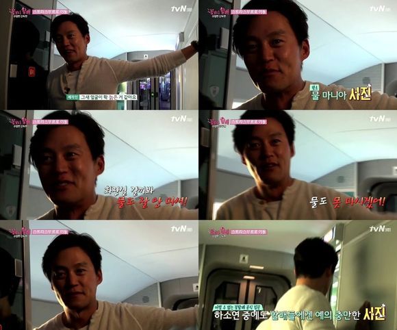이서진은 27일 오후 방송된 tvN 예능프로그램 '꽃보다 할배'에서 "물도 못 마시겠다"며 짐꾼의 고충을 털어놔 눈길을 끌었다.