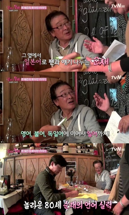 앞서 이순재는 영어와 불어, 독일어를 하는 모습까지 보였던 적 있어 또 하나의 언어 구사력을 선보여 보는 이들을 깜짝 놀라게 했다.