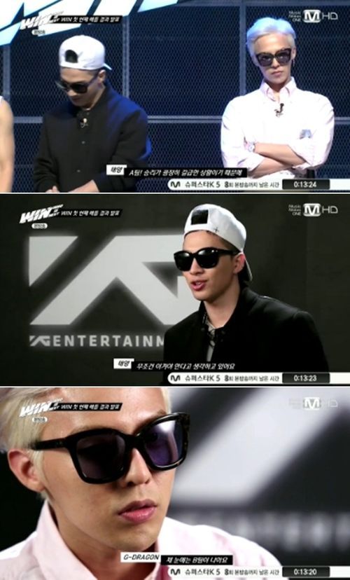 태양과 지드래곤은 27일 방송된 YG엔터테인먼트의 신인 서바이벌 프로그램 엠넷 '후즈 넥스트:윈(WHO IS NEXT : WIN)'(이하 WIN)에서 각각 A팀(강승윤, 이승훈, 송민호, 김진우, 남태현), B팀(B.I, 구준회, 김진환, 바비, 송윤형, 김동혁)의 프로듀서로 나서 활약했다.