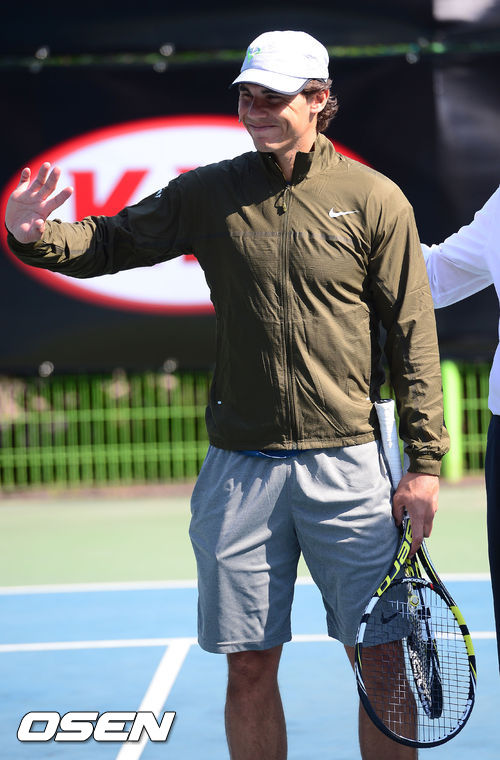 27일 오후 서울 광진구 쉐라톤 워커힐 호텔 테니스장에서 열린 라파엘 나달 방한 행사에서 나달이 팬들에게 인사를 하고 있다.